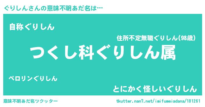 | 肩書あだ名 | 『ぐりしん上級大将』『ぐりしん閣下』 |