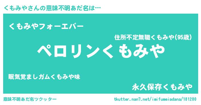 | 男性向けラノベタイトル風あだ名 | 『くもみやの憂鬱』 |