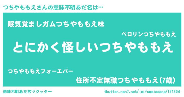 | ポケモン風あだ名 | 『ヒツチヤモモエ』『ツックウザ』 |