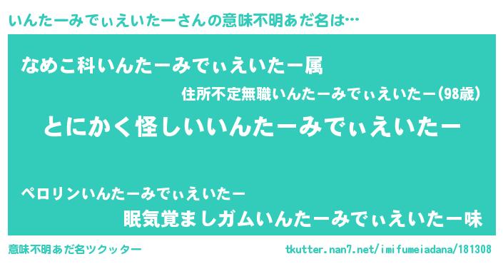 | 男性向けラノベタイトル風あだ名 | 『いんたーみでぃえいたーの嫁は女の子じゃないと思った?』 |
