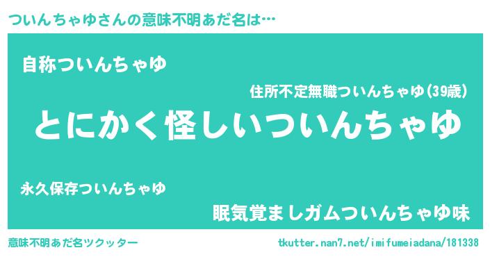 | ポケモン風あだ名 | 『ヒツインチャユ』『ツイセウス』 |