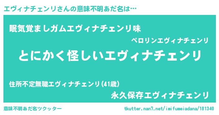 | 男性向けラノベタイトル風あだ名 | 『冴えないエヴィナチェンリの育てかた』 |