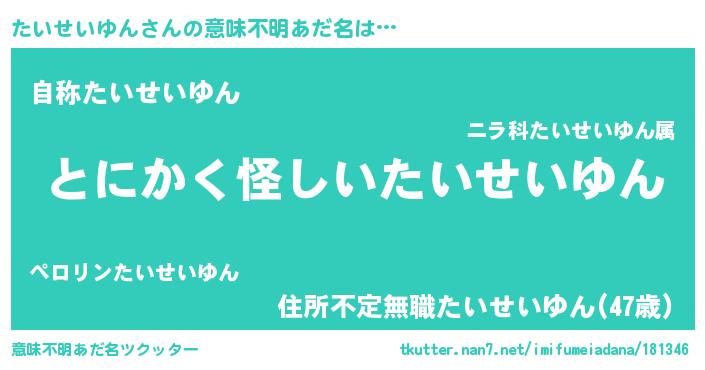 | 胡散臭い通販商品みたいなあだ名 | 『信頼と実績のサプリメント…その名も「たいせいゆん」』 |