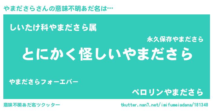 | 男性向けラノベタイトル風あだ名 | 『やまださらの嫁は女の子じゃないと思った?』 |