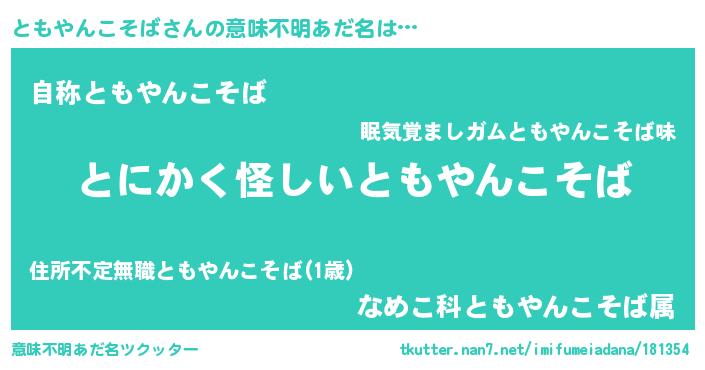 | 男性向けラノベタイトル風あだ名 | 『ともやんこそばに滅ぼされるだけの簡単なお仕事です』 |