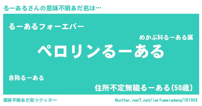 | 男性向けラノベタイトル風あだ名 | 『るーあるの憂鬱』『ルーアルスレイヤー』 |
