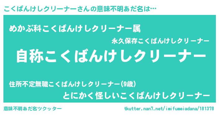 | 欧米人風あだ名 | 『アンジェラ・こくばんけしクリーナー』 |