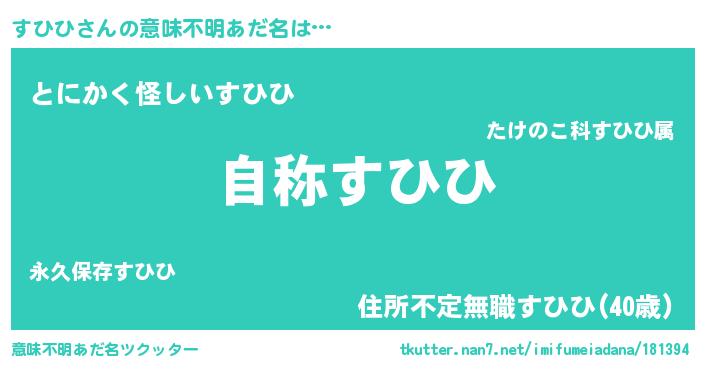 | ヘコむあだ名 | 『すひぷりん』『すひひ(小並感)』 |