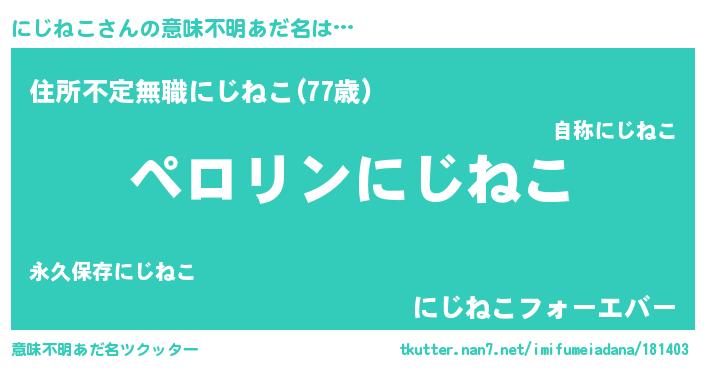 | 欧米人風あだ名 | 『にじねこ・ステッグマイヤー』 |