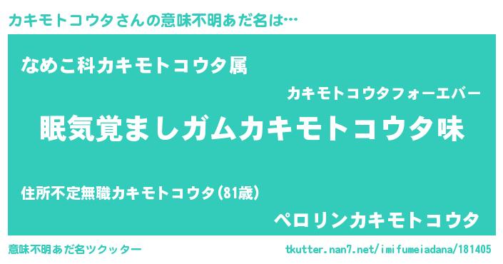 | 男性向けラノベタイトル風あだ名 | 『ノーゲーム・ノーカキモトコウタ』 |