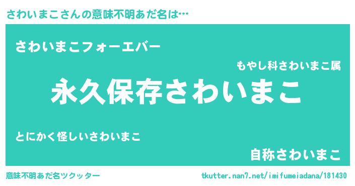 | 女子向けラノベタイトル風あだ名 | 『異世界でカフェさわいまこを開店しました。』 |