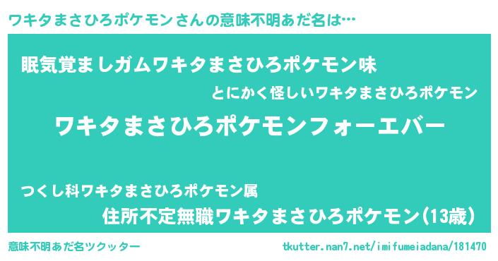 | ファンタジー風あだ名 | 『エターナルワキタマサヒロポケモンー』 |