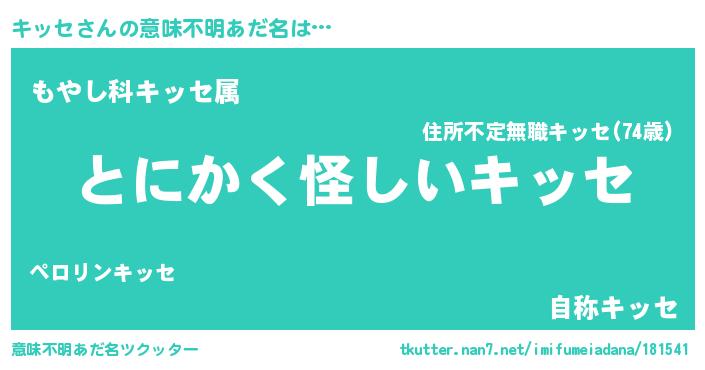 | ヒーロー風カッコイイあだ名 | 『黄金騎士キッ』『サイバー戦士キッセ』 |