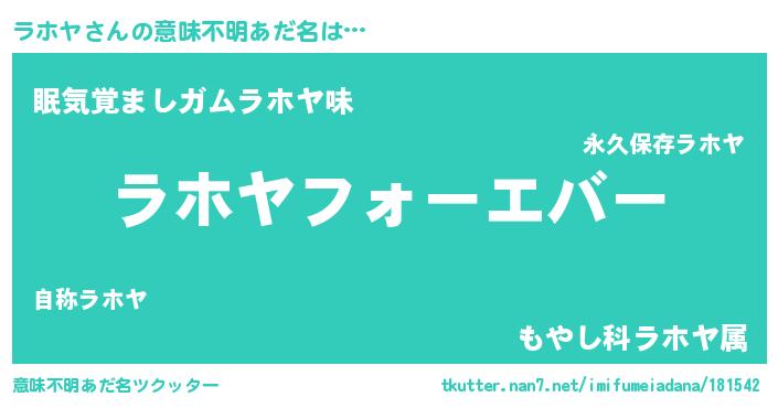 | ヘコむあだ名 | 『豆乳』『ラホヤ(爆)』『ラホぷりん』 |