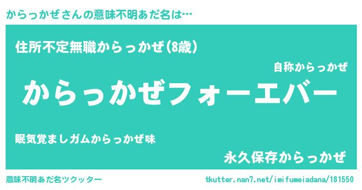 | 女子向けラノベタイトル風あだ名 | 『からっかぜの雑貨屋さん』 |