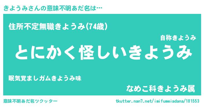 | 欧米人風あだ名 | 『きようみ・ステッグマイヤー』 |