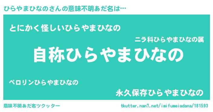 | 男性向けラノベタイトル風あだ名 | 『うちのひらやまひなのが世界を掌握している!』 |