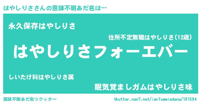| 欧米人風あだ名 | 『はやしりさクリステル』 |