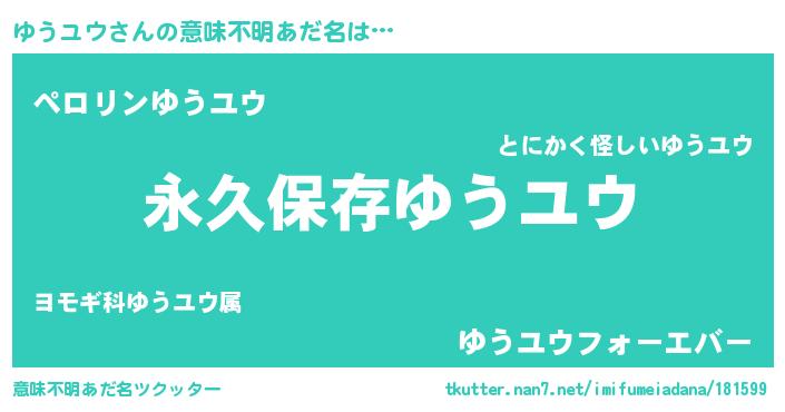 | ヘコむあだ名 | 『ゆうユウ(小並感)』『ゆうにー』 |