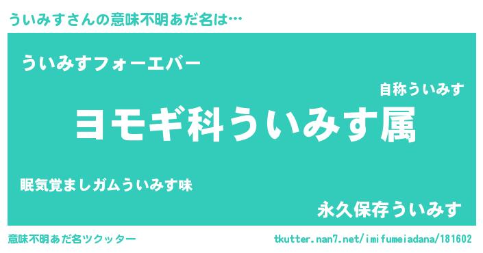| ヒーロー風カッコイイあだ名 | 『ウルトラういみすマン』『ネオウイミス』 |
