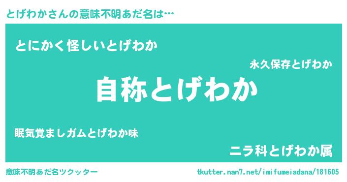 | ヘコむあだ名 | 『とげお』『とげわか(笑)』『つくし』 |