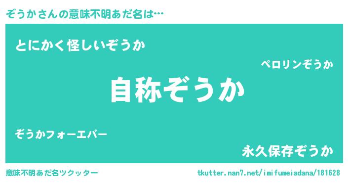 | 男性向けラノベタイトル風あだ名 | 『Re:ぞうかから始める異世界生活』 |