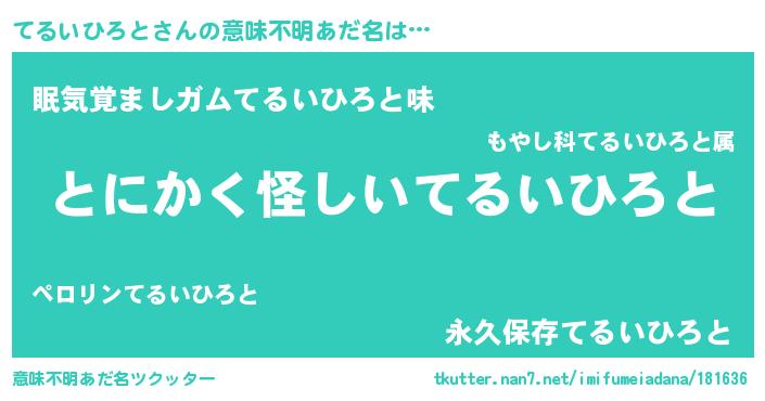 | ヘコむあだ名 | 『てる太郎』『てるいひろと(小並感)』 |