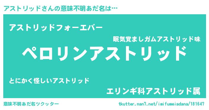 | 胡散臭い通販商品みたいなあだ名 | 『必ず成功する霊験あらたかなお札…その名も「アストリッド」』 |