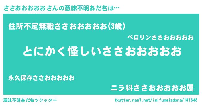 | 女子向けラノベタイトル風あだ名 | 『ささおおおおおの卵を拾いまして』 |
