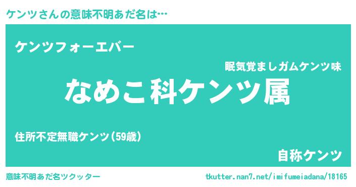 | ヘコむあだ名 | 『豆乳』『ケンっぺ』『ケンにゅー』 |