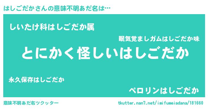 | ポケモン風あだ名 | 『ヒハシゴダカ』『メロハッシ』 |