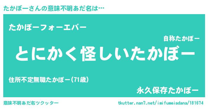 | 胡散臭い通販商品みたいなあだ名 | 『全米が絶賛したサプリメント…その名も「たかぼー」』 |