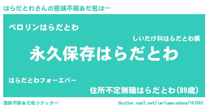 | ヘコむあだ名 | 『はらだとわ(震え声)』『はらっふぃ~』 |