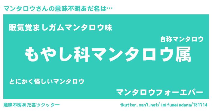 | 男性向けラノベタイトル風あだ名 | 『転生したらマンタロウだった件』 |