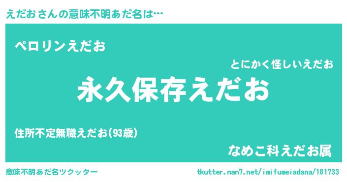 | 欧米人風あだ名 | 『えだお・ステッグマイヤー』 |