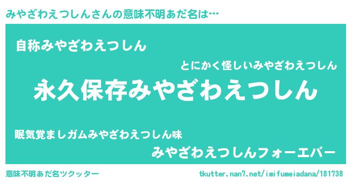 | ヒーロー風カッコイイあだ名 | 『ネオミヤザワエツシン』『幻影騎士ミヤ』 |