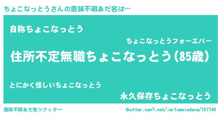| ヘコむあだ名 | 『ちょこなっとう(震え声)』『豆乳』 |