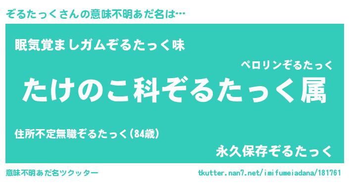 | 男性向けラノベタイトル風あだ名 | 『転生したらぞるたっくだった件』 |