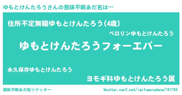 | 男性向けラノベタイトル風あだ名 | 『やはりゆもとけんたろうの青春ラブコメはまちがっている 』 |