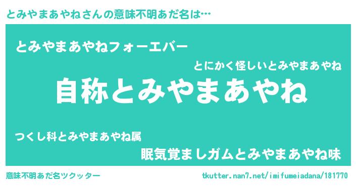| 女子向けラノベタイトル風あだ名 | 『とみやまあやねなんてお断りですっ。』 |