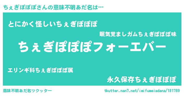 欧米人風あだ名 | 『ちぇぎぽぽぽクリステル』 |
