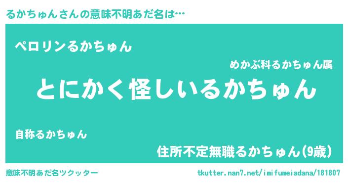 | ピコ太郎風あだ名 | 『ルカ史郎』『ルコ八郎』『ピル三郎』 |