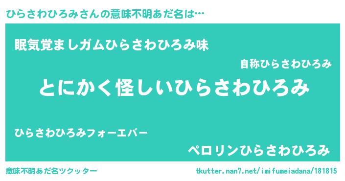 | 男性向けラノベタイトル風あだ名 | 『ひらさわひろみに滅ぼされるだけの簡単なお仕事です』 |