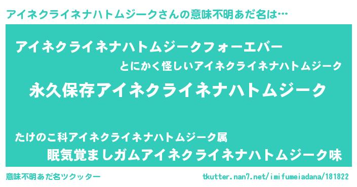 | 胡散臭い通販商品みたいなあだ名 | 『前代未聞の水素水…その名も「アイネクライネナハトムジーク」』 |