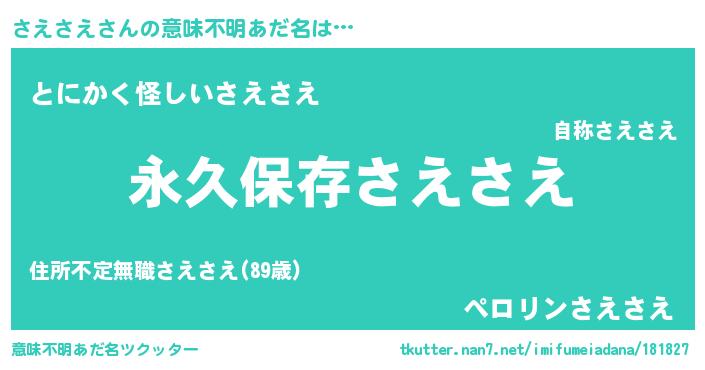 | 男性向けラノベタイトル風あだ名 | 『さえさえという概念が存在しない退屈な世界 』 |