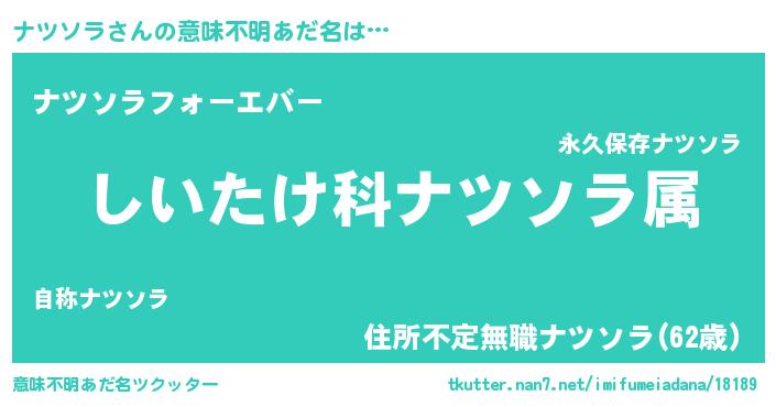 | 肩書あだ名 | 『ナツソラ上級大将』『ナツソラ総理大臣』 |