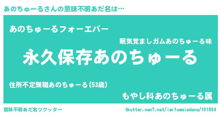 | ヘコむあだ名 | 『あのちゅーる(遠い目)』『なまこ酢』 |