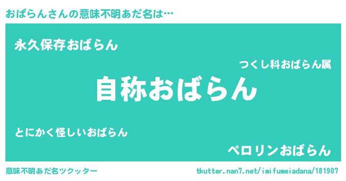 | 男性向けラノベタイトル風あだ名 | 『Re:おばらんから始める異世界生活』 |