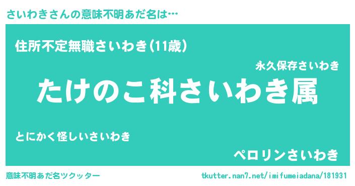 | ヒーロー風カッコイイあだ名 | 『仮面サイダー』『スーパーサイワキ』 |