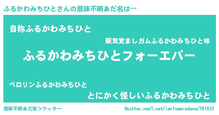 | 男性向けラノベタイトル風あだ名 | 『ふるかわみちひとに滅ぼされるだけの簡単なお仕事です』 |